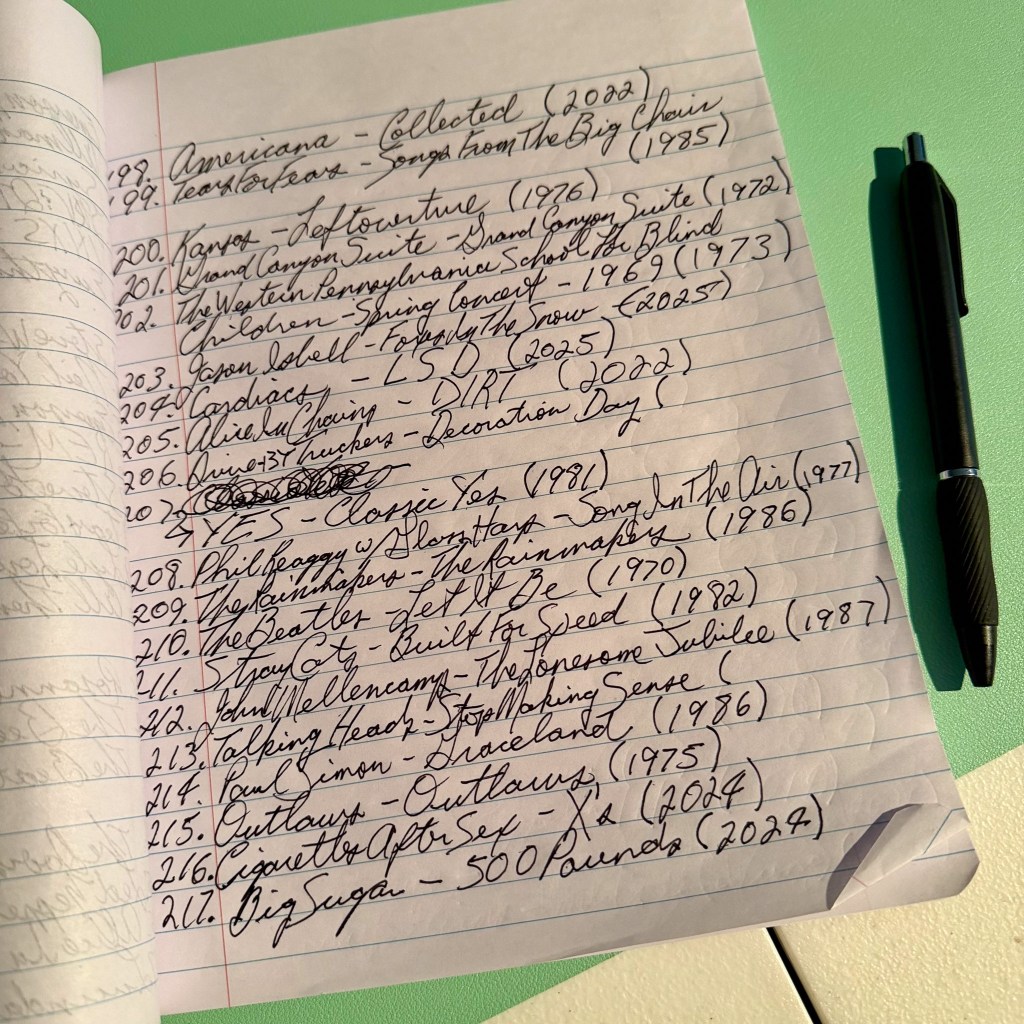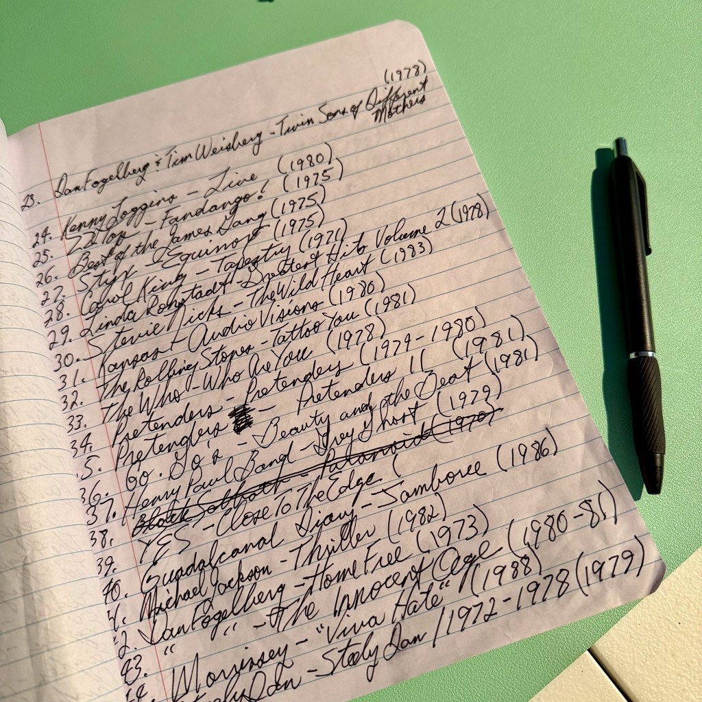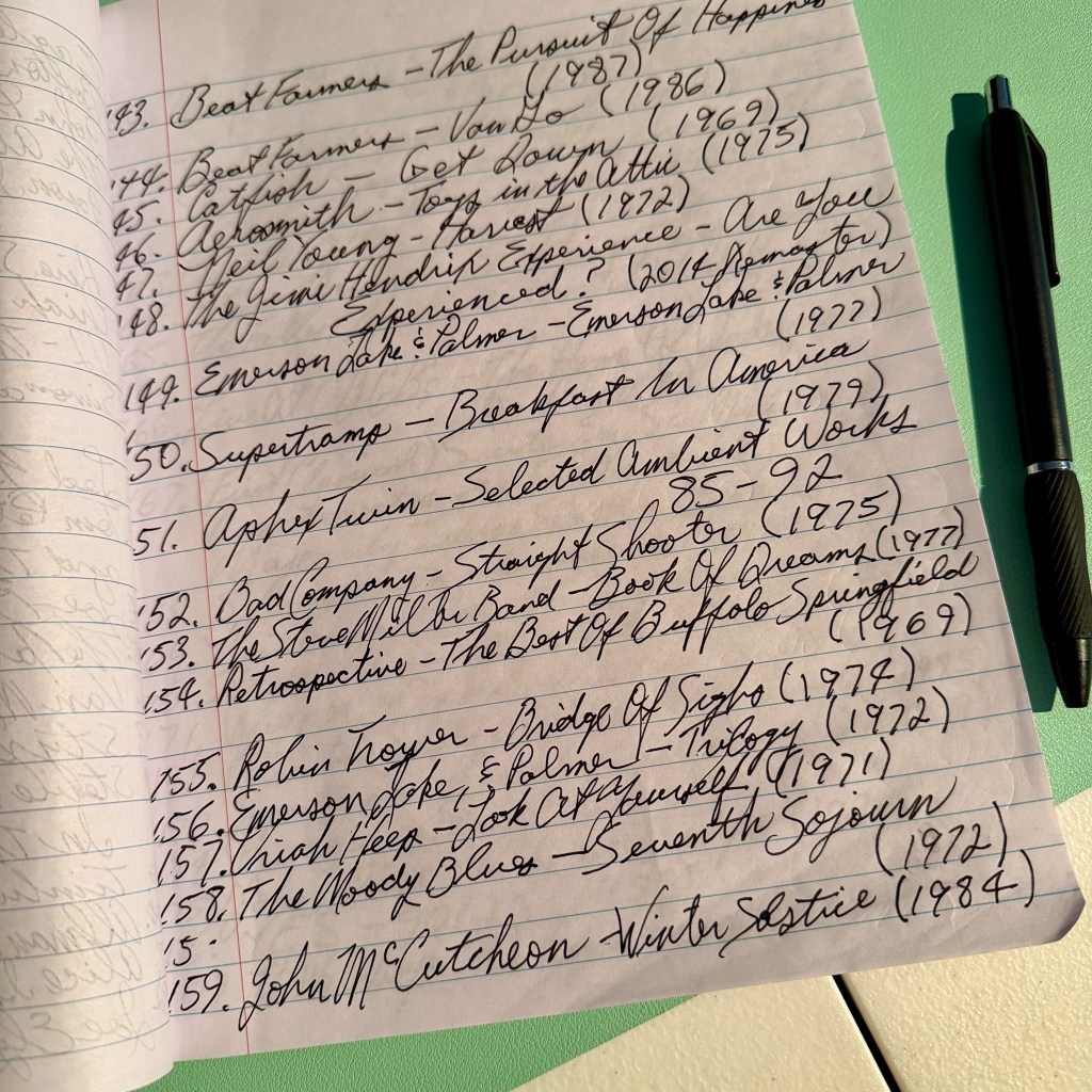 I need your opinion on if I should continue listing my records the old fashioned way as pictured below, or start documenting them on my computer? And if you have a suggestion for a record I should get, please let me know!