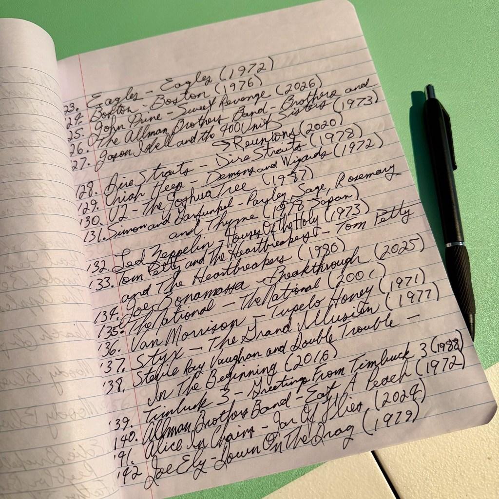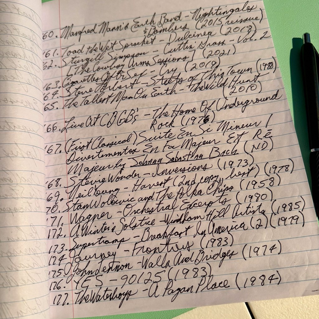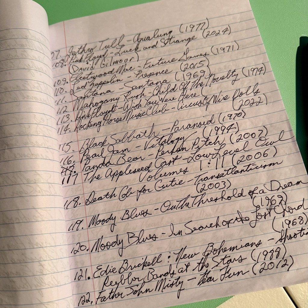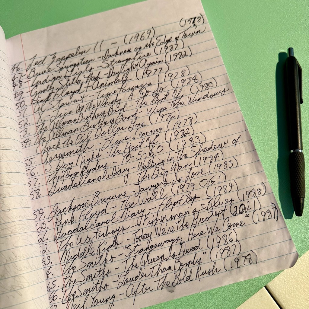 I need your opinion on if I should continue listing my records the old fashioned way as pictured below, or start documenting them on my computer? And if you have a suggestion for a record I should get, please let me know!